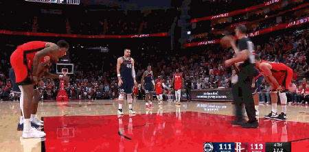 申京、阿门在快船球员的注目围观下连续点板,一下,两下,三下……