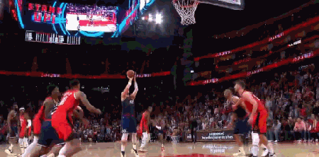 然后又是一记弧顶3分,紧咬住了比分