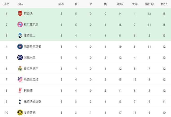 随着曼城2-1反超皇马,阿森纳1-0,巴黎0-0,欧冠最新积分榜出炉