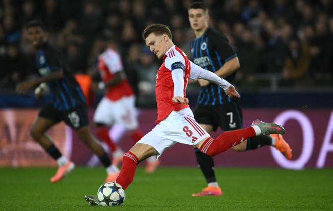 客场面对比利时豪门布鲁日,阿森纳在场面几乎五五开情况下,踢得更为高效,上半场依靠马杜埃凯的世界波破门,暂时一球领先。
